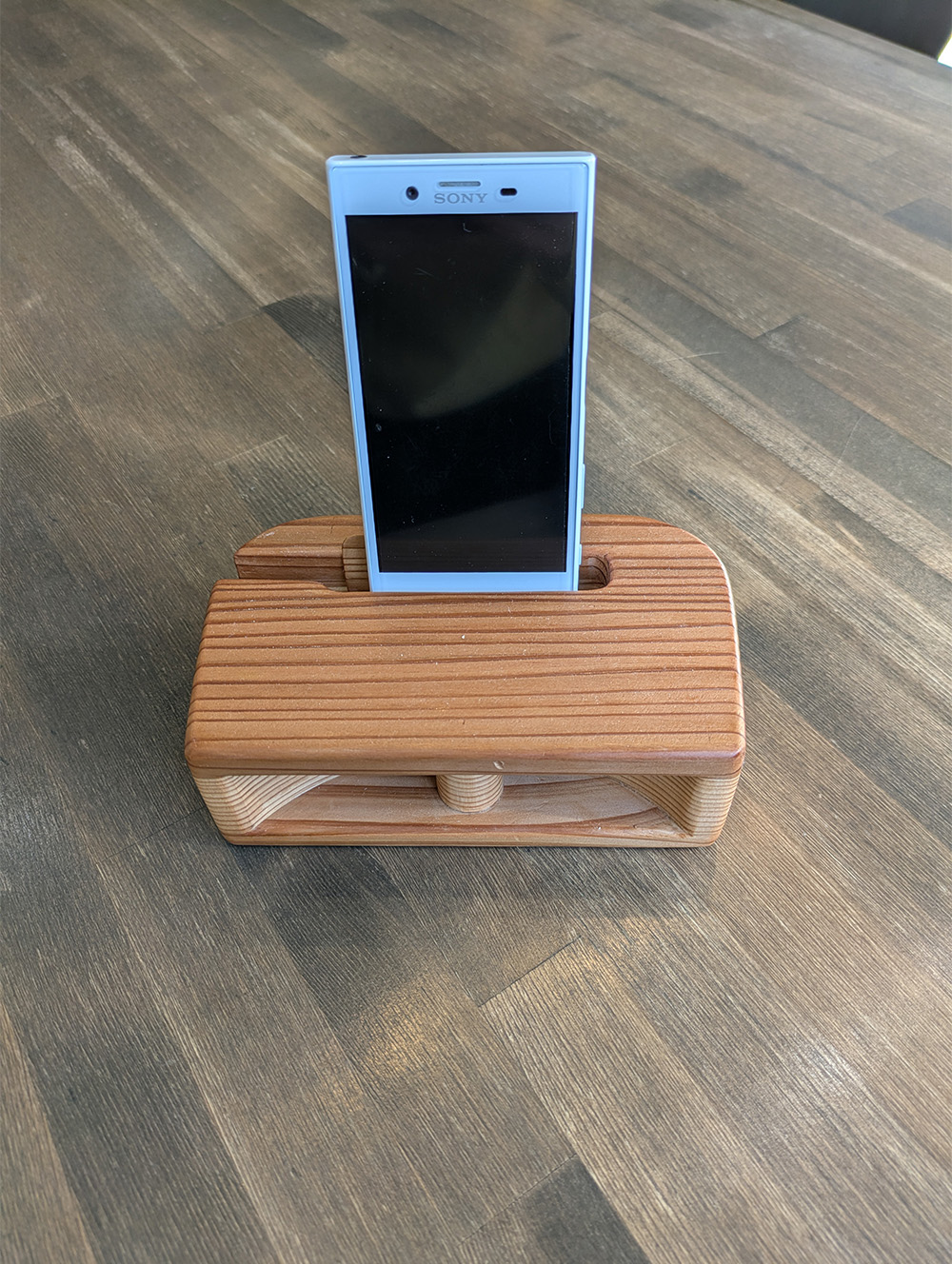 先日、木で作ったスマホのスピーカーをいただきました。