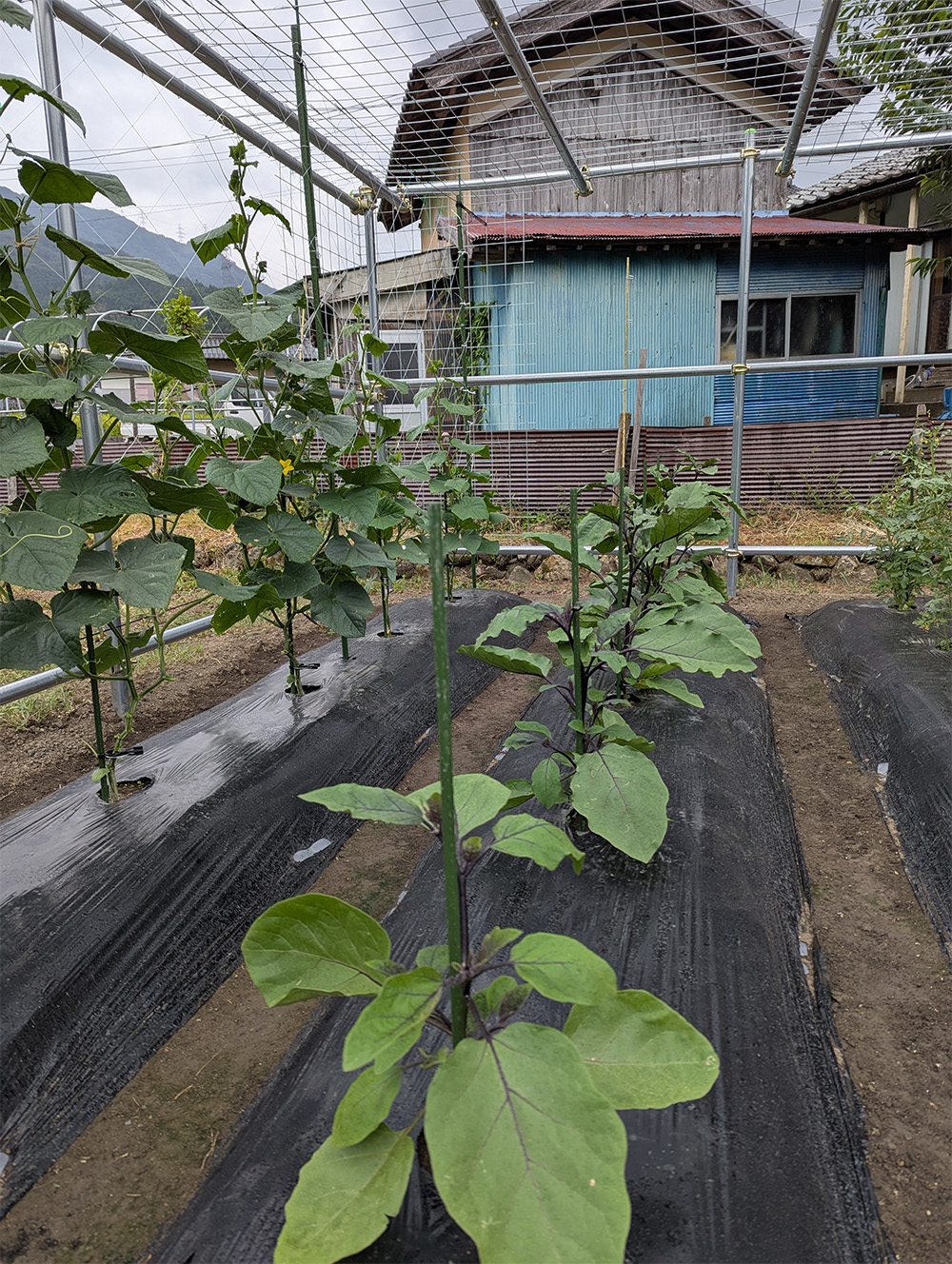 隣で育ちだした秋ナスの4本仕立てにもトライ。