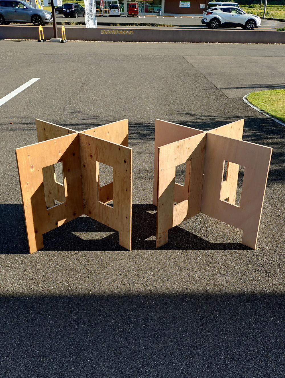 ベニヤ板を上に置いて確認です。